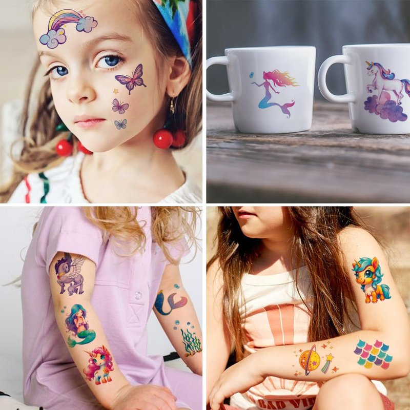 - ⚡Glitter Mermaid Tattoos for All Occasions -- These awesome tattoos can be used in various occasions, such as birthday party supplies, party decorations, party favors, party bags, DIY decorations, summer holidays, pool and the beach or gift for kids and rewards. Kids temporary tattoos are the best party favors and goodie bags fillers ever for any kind of celebration!