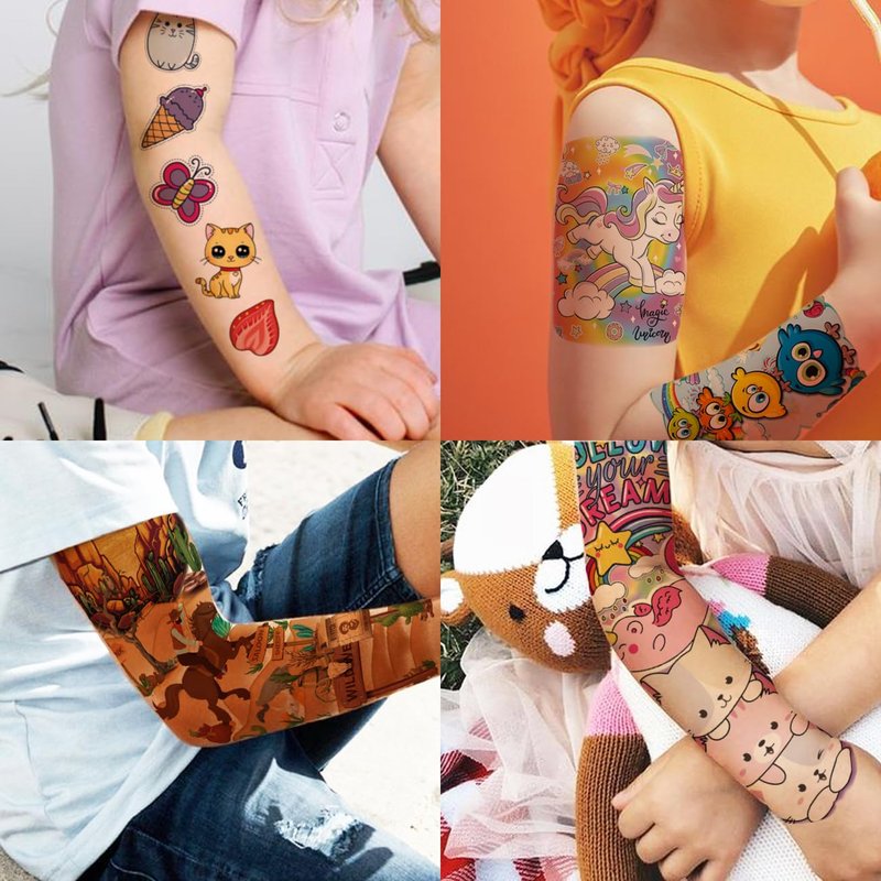 - ⚡27 Sheets Waterproof and Long Lasting Fake Sleeve Tattoos for Kids -- 27 Sheets cartoon tattoos to be easily included in a party gift bag or kids stocking stuffers. Easy to share,even if a lot of people's parties, you can have a different tattoo with others.These chic and cool tattoos will keep you and your little ones – and their friends – occupied for a while. Great for playdates, parties.