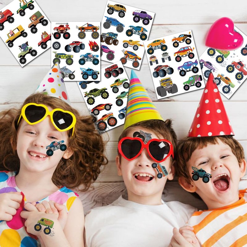 - ⚡Monster Truck Tattoos for All Occasions -- These awesome tattoos can be used in various occasions, such as birthday party supplies, party decorations, monster truck party favors, party bags, DIY decorations, pool and the beach or gift for kids and rewards. Kids temporary tattoos are the best party favors and goodie bags fillers ever for any kind of celebration!