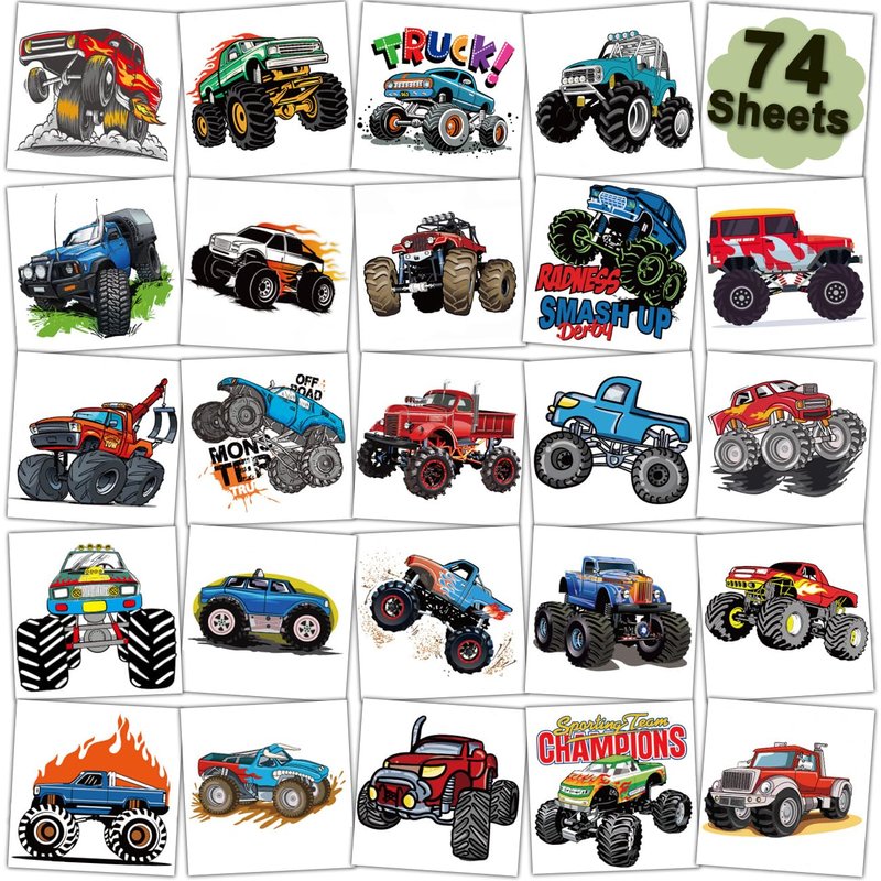 - Style: Monster Truck Temporary Tattoos for Kids