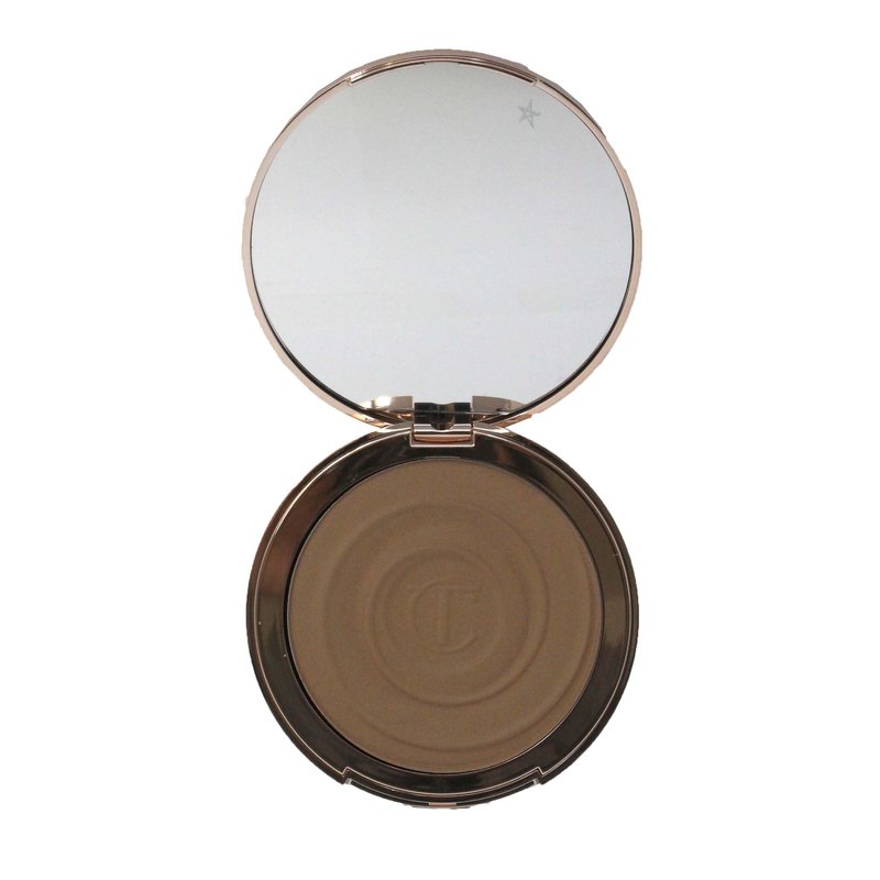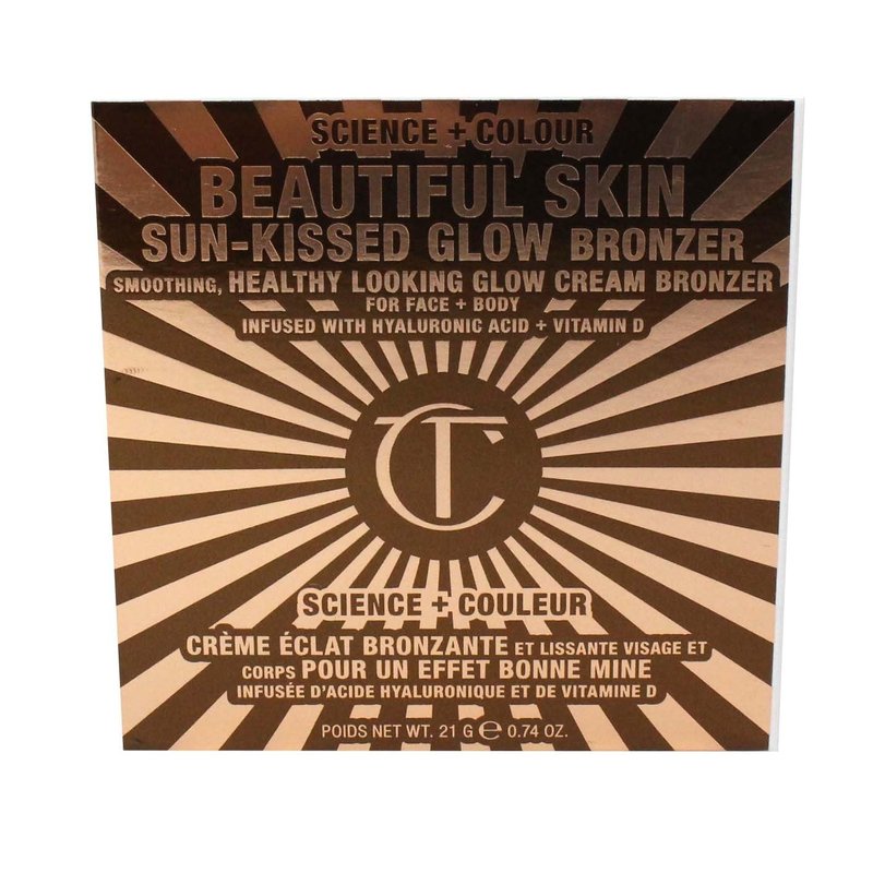 Experience the perfect summer glow with Charlotte Tilbury Beautiful Skin Sun-Kissed Glow Cream Bronzer in "1 Fair - Natural Soft Bronze." This 16-hour wear cream bronzer comes in four stunning sun-kissed shades for face and body, offering medium, buildable coverage with a natural finish.