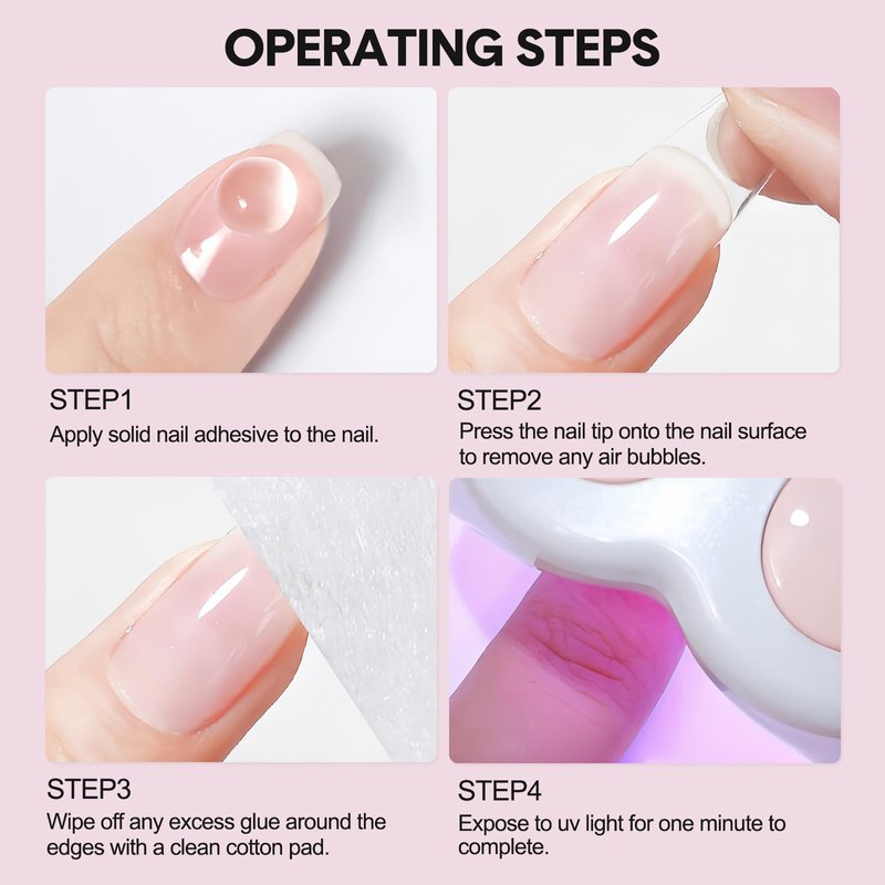 - 【Easy to Use】Apply CHARMARK nail gel to the tip of the nail, press to the right position, wipe off the spilled gel, and place it under an ultraviolet lamp to cure the nail gel for 1 minute. The cured gel is very strong and will not fall off easily. The UV lamp can be repositioned before curing.
