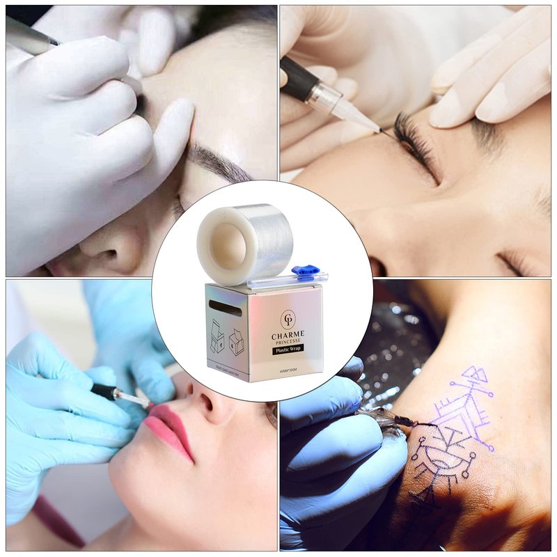 - Eyebrow Tattoo Wrap Specification: Come with 2 rolls plastic wrap. 4.2 cm/ 1.65 inches in width, about 300 Meters in length. Ultra-thin, easy to tear, good toughness and professional design.