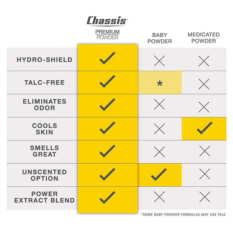 - ๐ฆ๐๐ฎ๐ ๐๐ผ๐ผ๐น: With Chassis Ice Max powder, stay protected, cool, and confident. Ice Max features 10x more cooling compared to our best selling original premium powder.