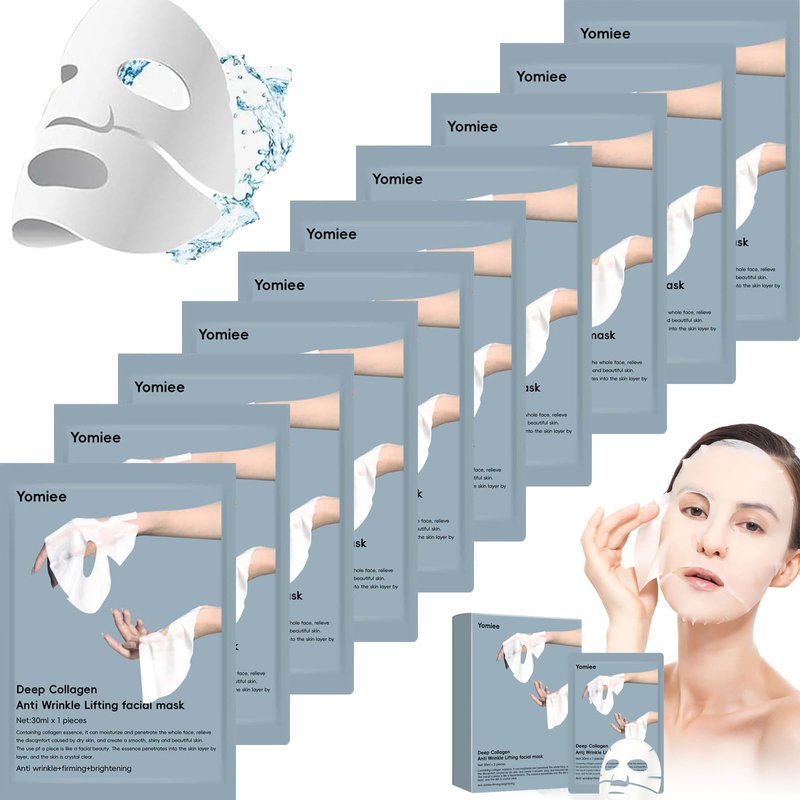 Chbgutlmr 10 Pack Deep Collagen Mask, Anti-Wrinkle Overnight Mask, Korean Face Mask, Bio Collagen Face Mask Overnight,Firming and Moisturizing