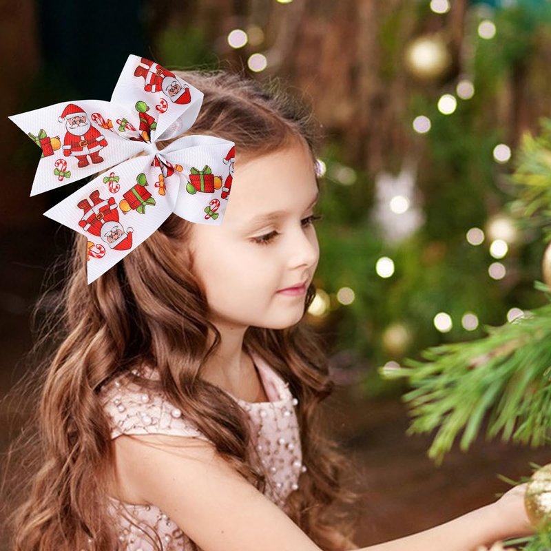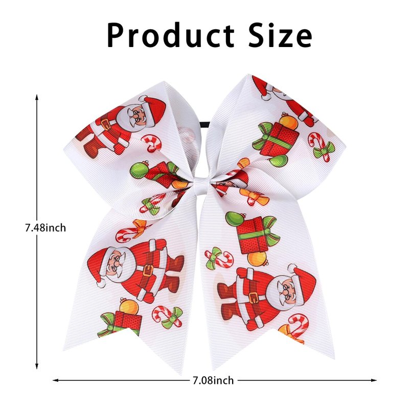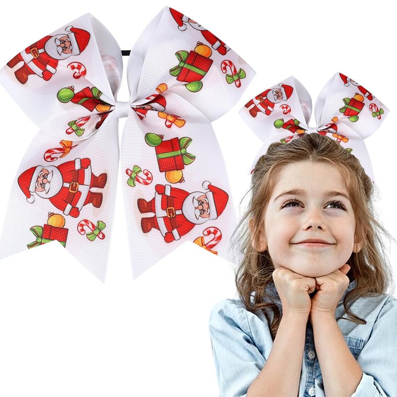 - [Hair Bows Design] This Christmas old man and gift printed grosgrain ribbon design and hair ties is meticulously handcrafted with exquisite attention to detail, mainly colored in white and red, The back of the cheering bow is designed with a reliable elastic band that fits easily.