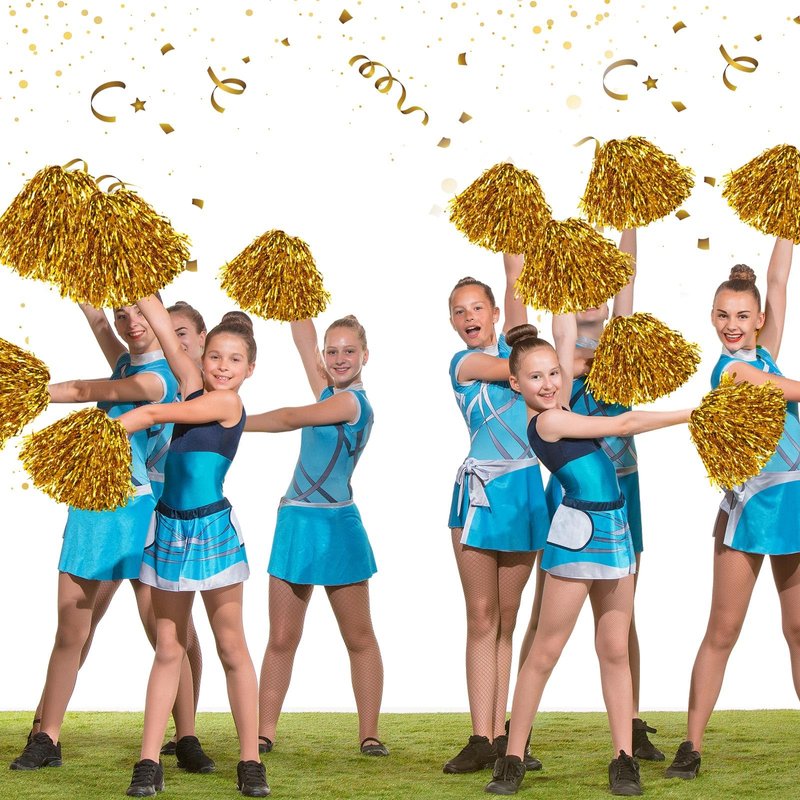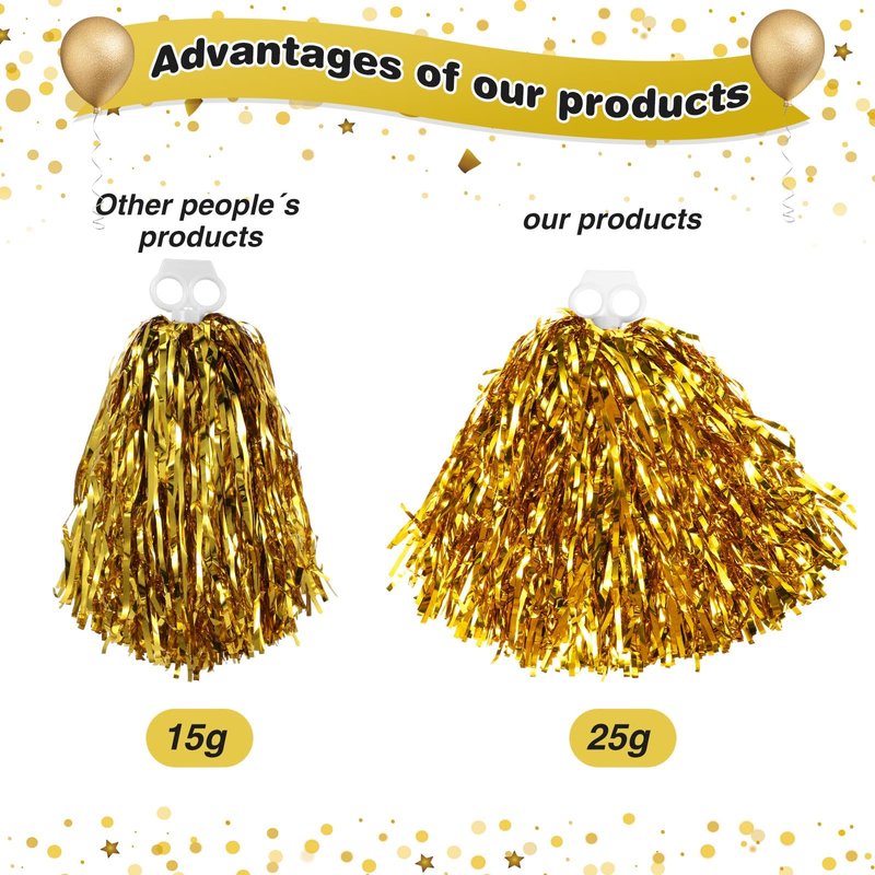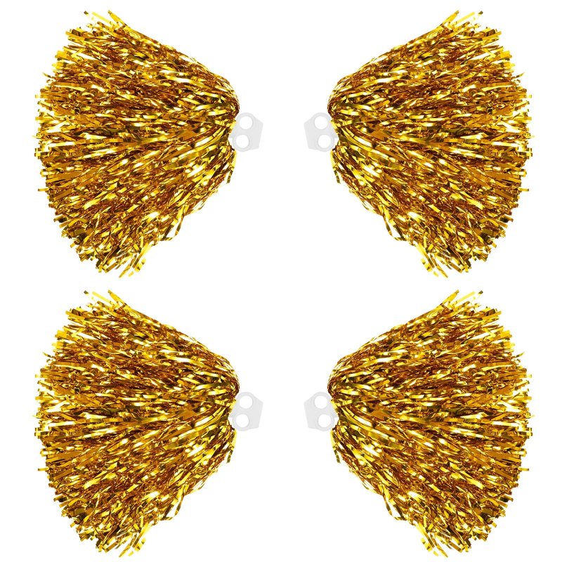 - Sufficient to Use or Share: the package contains 4 pieces of cheerleading pom poms in bright gold color, designed with plastic ring handles, enough to meet your cheering needs, and you can share them with cheerleaders