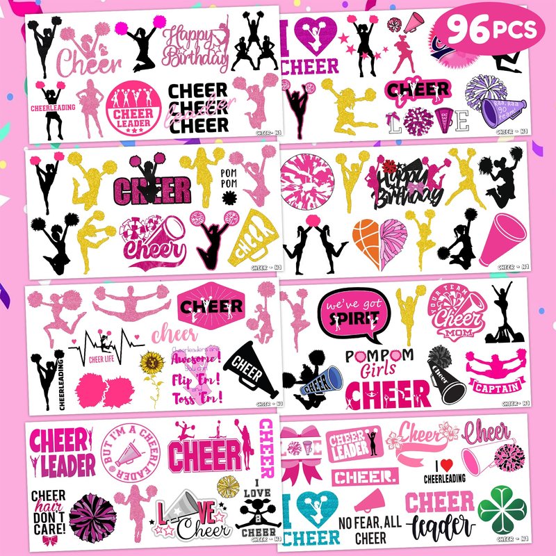 - Including eight sheets tattoos with various styles, sufficient in quantities and colors to meet your daily requirement of using and sharing. You guys can easily use this set of Cheerleading temporary tattoos and take unique photos to make fond memories.