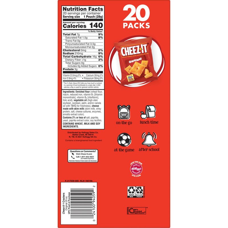 Cheez-It Cheese Crackers, Baked Snack Crackers, Lunch Snacks, Original, 20oz Box (20 Packs)