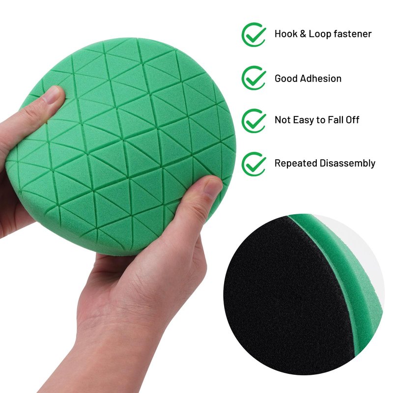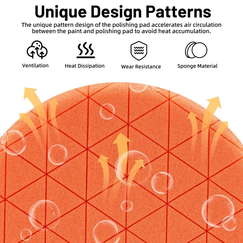 - 🚗【Unique Design】The polishing pad has different sizes on both sides - 6.5"/165mm on the front and 6"/150mm on the back. The unique honeycomb pattern design on the surface can protect the surface from scratches during polishing, reduce the wear of the polishing pad itself, improve the airflow between the pad and the surface, and also have the function of heat dissipation.