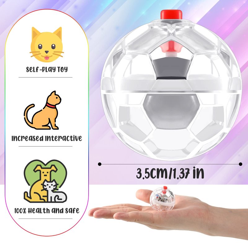 - Considerate Material Adopted: cat toy balls are made of reliable PC material, strong and sturdy, no bad smell; And the LED light is soft light that won't make pets feel dazzling or uncomfortable, the built in battery can last about 24 hours