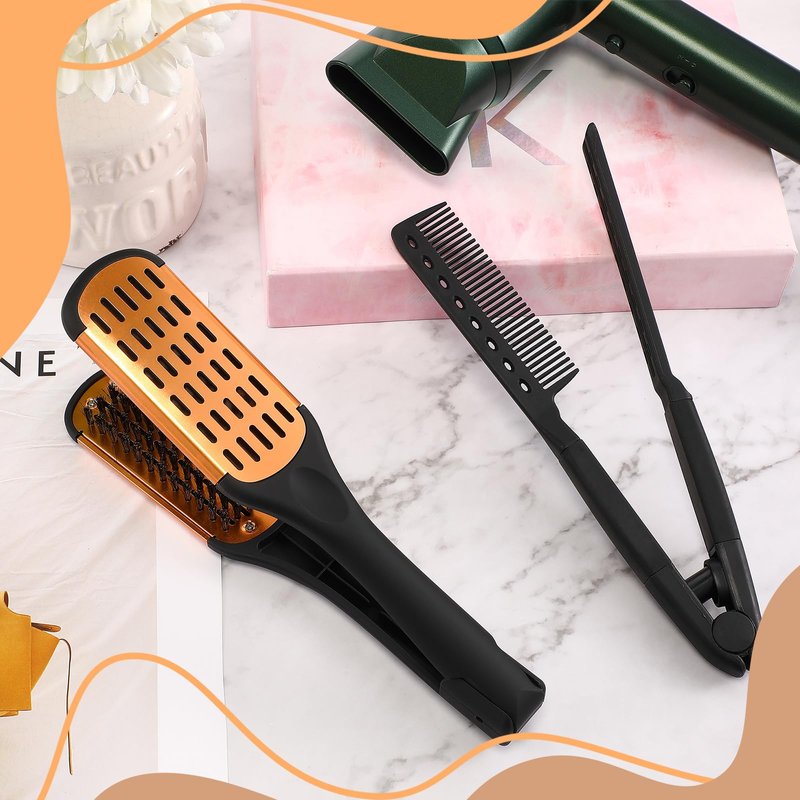 - Practical Tools: featured with the double sided design, the boar bristle straightening brush applies the clamp shape, which offers much convenience for you to straighten your hair; And when you are using a flat iron, the V shaped styling hair comb can protect your hands from scald, by helping fix your hair in place