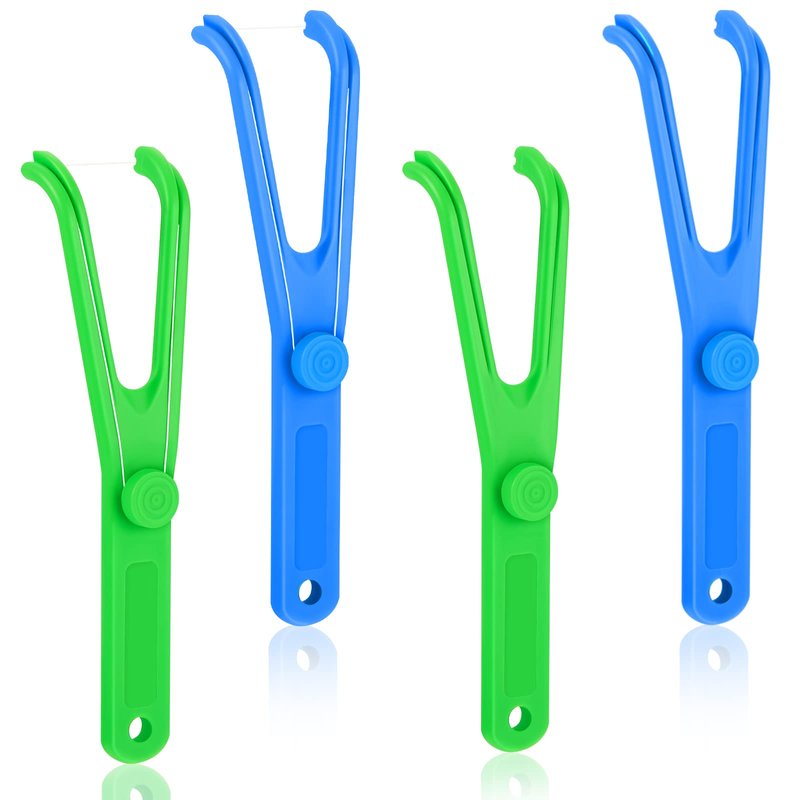 Chengu 4 Pieces Dental Floss Holder Reusable Flosser Reusable Floss Handle Holder Flossmate Handle for Oral Clearing (Blue, Green)