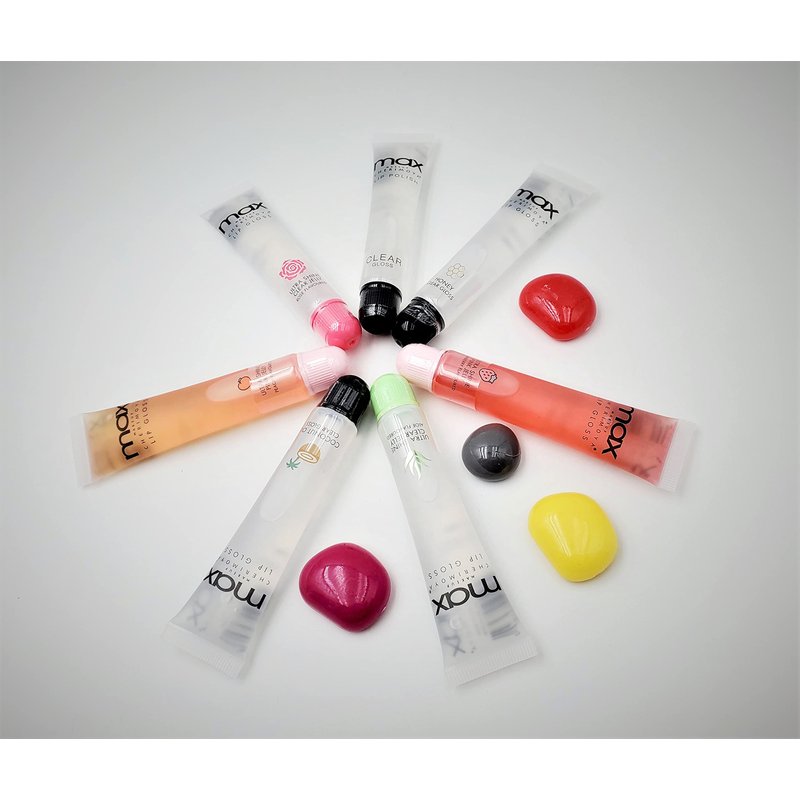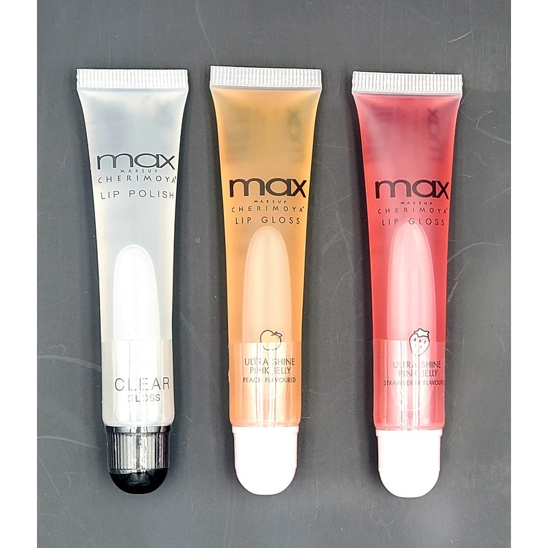 Variety set of 3max cherimoya lip gloss- clear, peach, straberry lip gloss