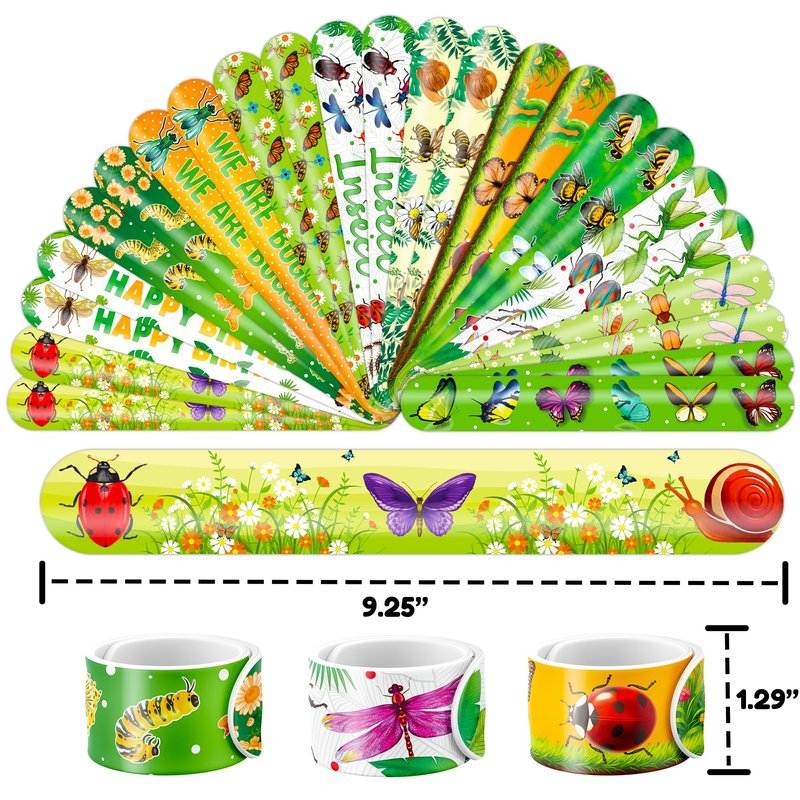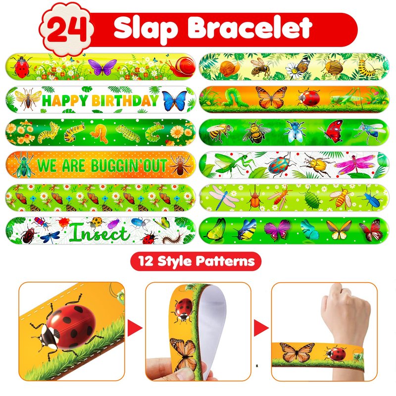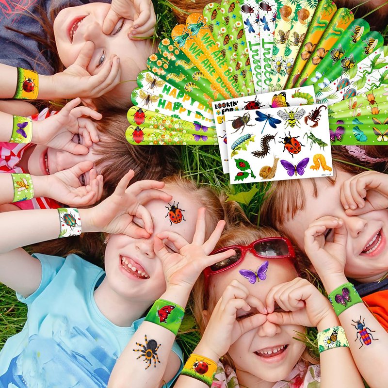 - šćPERFECT GIFT FOR BUG ENTHUSIASTSć: Our Bug Temporary Tattoos and Slap Bracelets are the perfect gift for people of all ages, from kids to adults. Suitable for any occasion, they offer an affordable and delightful option. Whether for school events, birthdays, or stocking stuffers, this Bug themed collection adds a fashionable and nostalgic element to anyone's accessory collection, invoking happiness and cherished memories.