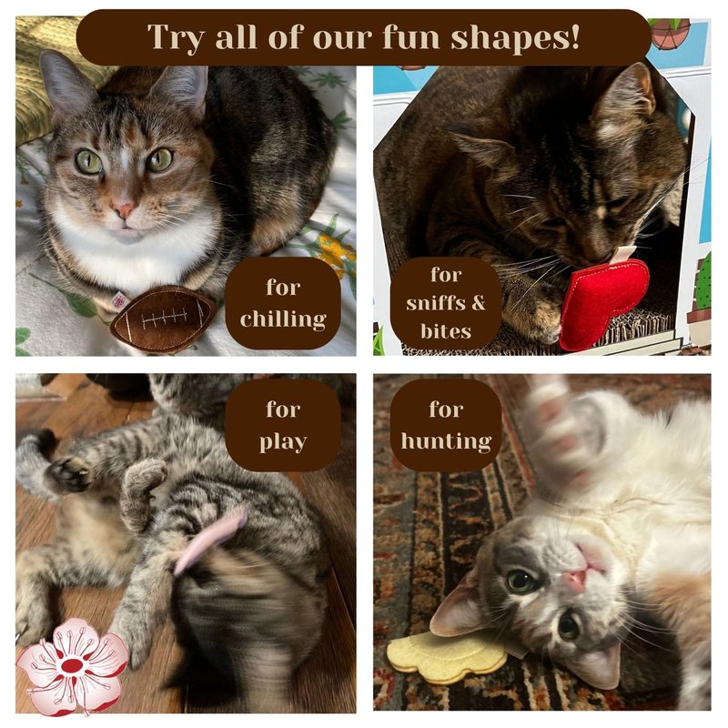 Introducing our new line of cat toys made with 100% organic catnip sown into 100% wool felt with the OEKO-TEX 100 safe textiles certification. Our organic catnip was grown and dried this year at our USDA certified organic farm in southwestern Pennsylvania, making it the most potent and aromatic catnip around! If your kitties respond to catnip, they are sure to go crazy for it! Our cat toys are handmade, sown individually by our Pennsylvania-based sewing partner, ensuring long-life and durability. Catnip is an herb, known to stimulate your cat's natural hunting instincts, providing your feline friends with hours of entertainment and play. The variety of shapes and textures of our toys will keep your cat engaged and interested, helping to prevent boredom and destructive behavior. Whether your cat loves to chase, pounce, or snuggle, our cat toys are sure to be your cat's new favorite toy! A portion of every sale is donated to animal rescue organizations. Our catnip is certified 100% organic by PCO.