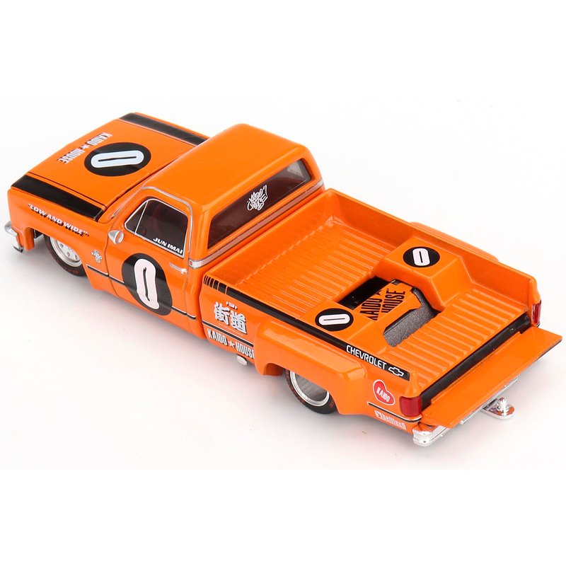 Chevy KAIDO Works V2 Pickup Truck #0 Orange with Graphics (Designed by Jun Imai) Kaido House Special 1/64 Diecast Model Car by True Scale Miniatures KHMG090
