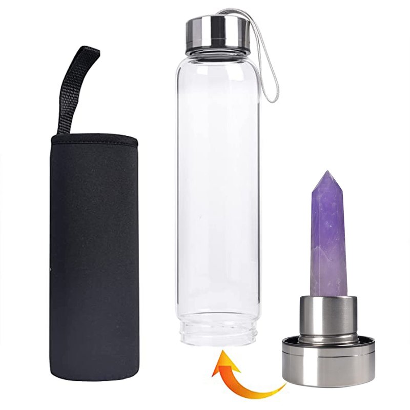 - MATERIAL - Crystal glass water bottle energy bottle is made with stainless steel and high borosilicate glass, suitable for hot or cold drinks, easy to clean. Natural crystal is rich in minerals. After running, exercise, yoga, dancing and meditation, it can provide trace minerals for the human body. In addition, this unique crystal bottle is an excellent choice even as a collection and decoration.