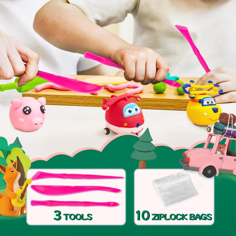 - Everything You Need: Inside this kit, you'll find a treasure trove of creative tools. It includes 24 vibrant clay colors, 10 ziplock bags for storage, 3 sculpting tools for shaping, and 1 clay story manual to inspire limitless imagination.