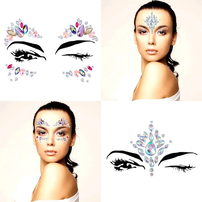 - Rhinestone face tattoo with chic design is a good accessories to sparkle up your festival make up.Team up with glitters,bikini,rave clothing for the ultimate look,it will be the most attractive looks.