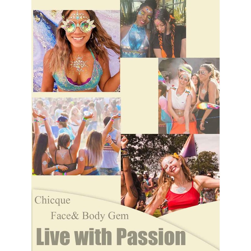 ❤Chicque is good at integrating the latest trend elements on the Face Stickers.Attending parties,festival, prom, etc,Chicque's Face Gems with different clothes will have a more special and eye-catching effect.