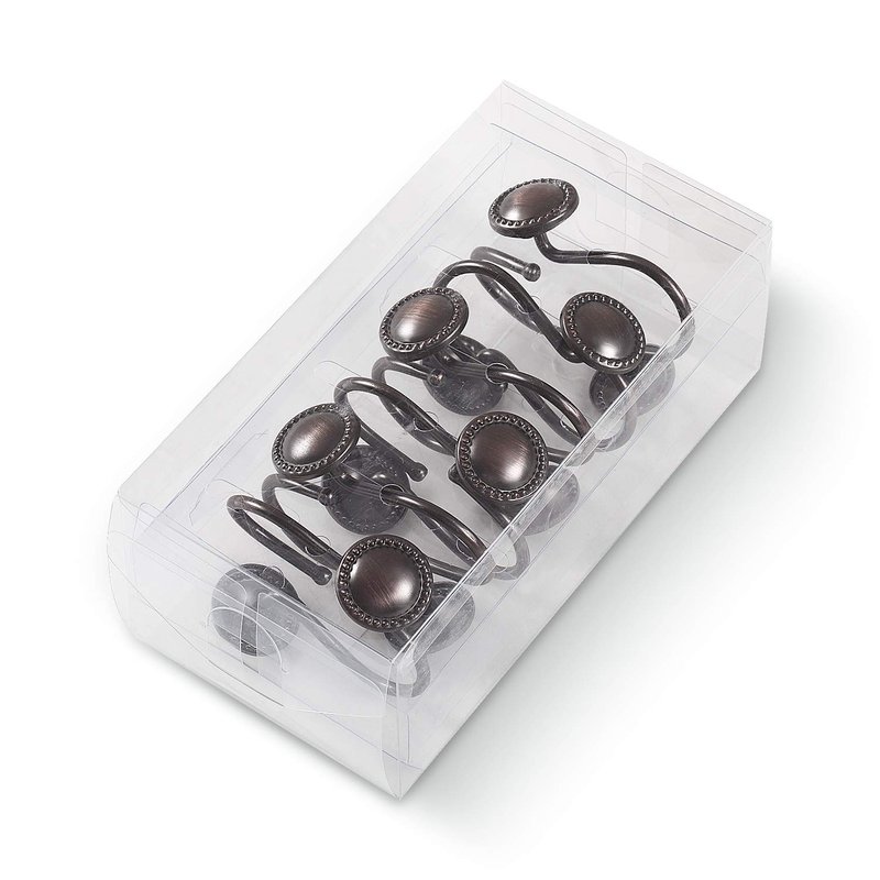 - Oil Rubbed Decorative Shower Curtain Hooks Rings-Anti-rust metal shower hooks,Very sturdy metal welded structure,they won’t crack or easily detach when hanging even heavy shower curtain, can hang both shower curtain & shower liner at once