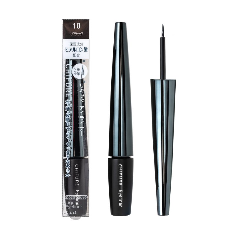 Chifure Liquid Eyeliner Black, [Liquid eyeliner with vivid color] A liquid eyeliner that creates attractive eyes with deep and clear color. [Fine brush type that is easy to draw] A vase-shaped eyeliner with a fine brush that allows you to easily draw both thin and thick eyeliners. It has a smooth drawing feel and can be drawn evenly without blurring. [Not easy to remove] A smudge-resistant eyeliner that is resistant to water, sweat, and sebum, and maintains a beautiful finish for a long time.