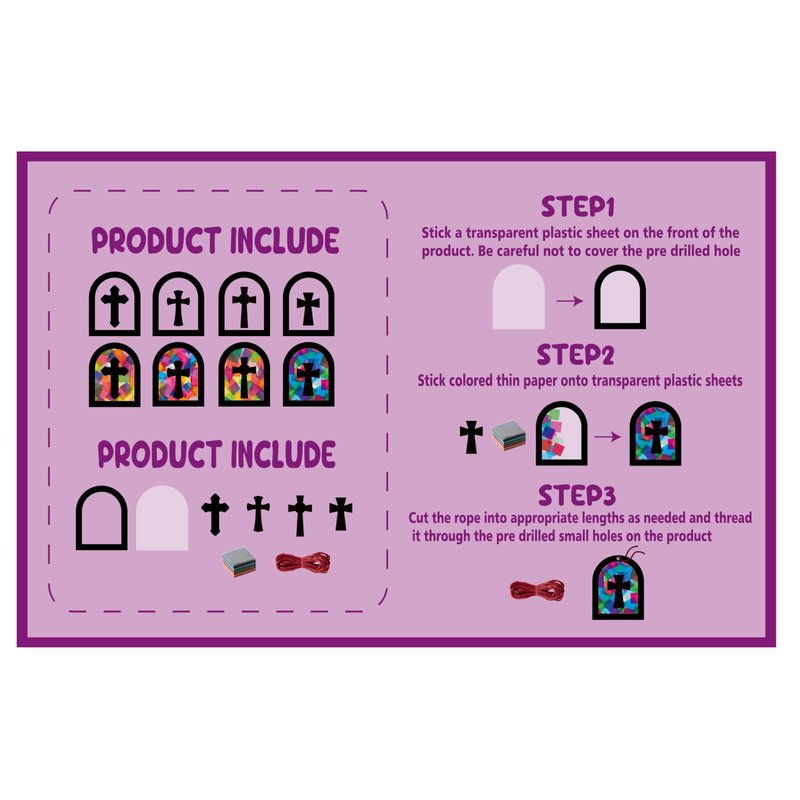 - Extensive Package Contents: the kit includes 24 sets of religious cross crafts in 4 styles; Including 24 hollowed out cardboard sheets, 24 cross stickers, 1000 thin sheets of colorful tissue, and a long rope; Whether you're creating alone or hosting a crafting party, this kit provides an abundant supply of material to cater to your needs; Stick colored tissue one by one on the back of the hollow cardboard for use, excluding clear pieces