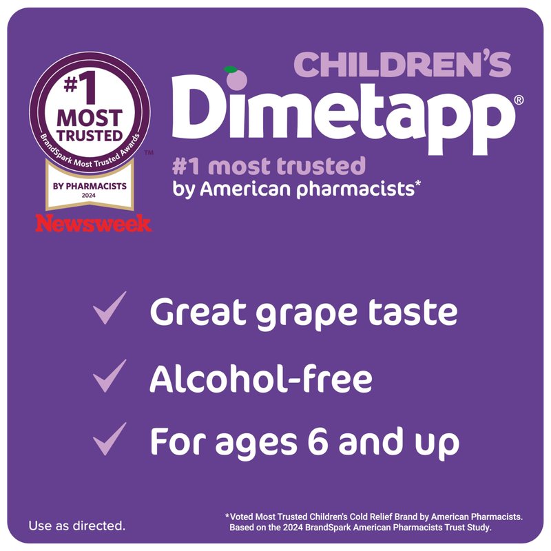- #1 MOST TRUSTED CHILDREN’S COLD RELIEF BRAND: Children’s Dimetapp is the #1 most trusted brand by American pharmacists.* Dimetapp is renowned for its efficacy and safety!