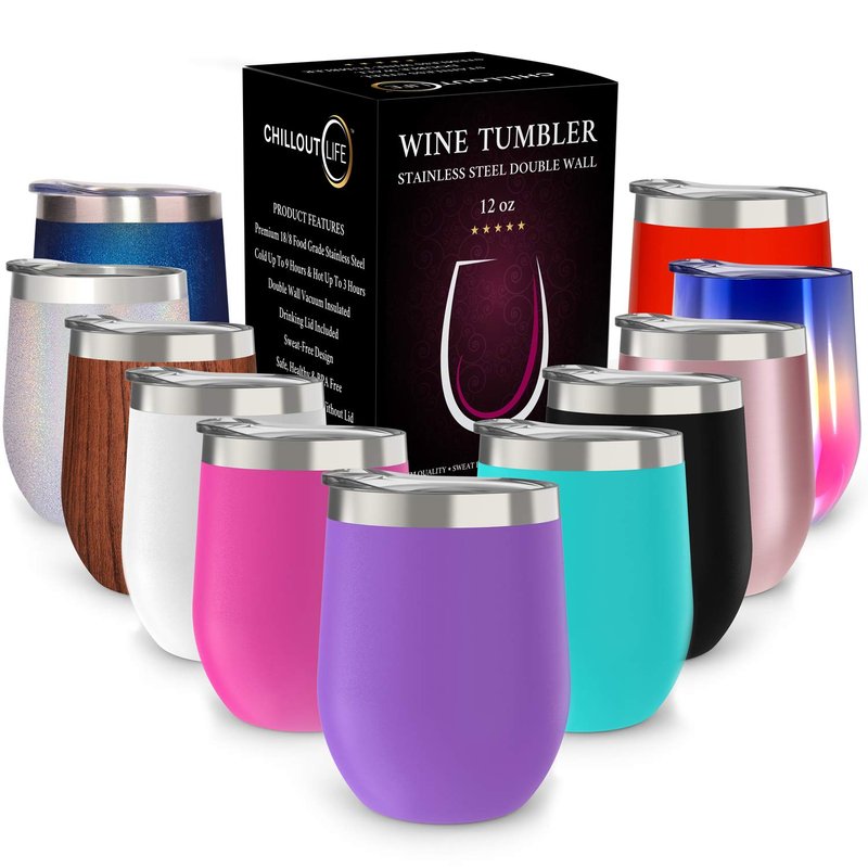 CHILLOUT LIFE colorful 12 oz stainless steel insulated wine tumblers are the answer to durable, sturdy, unbreakable drinkware solution for your home, office, picnic and nature adventures.