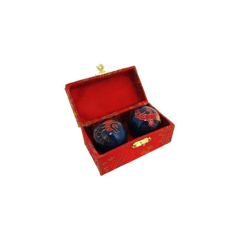 A time-honored Eastern philosophy yields healthy benefits for the body, mind, and soul. In addition to relieving stress, Chinese Health Balls are known to improve joint pain, blood circulation, sleep patterns, and memory. These balls feature a dynamic dragon design. Encased in an alluring treasure chest style box. Balls may be red, green, or blue. Box may be red, green or blue.