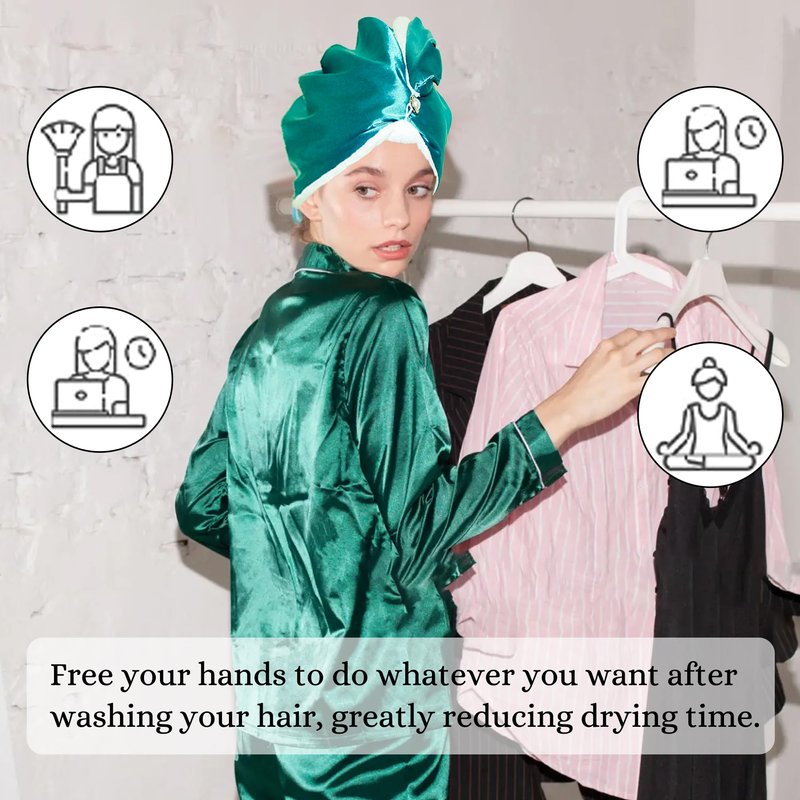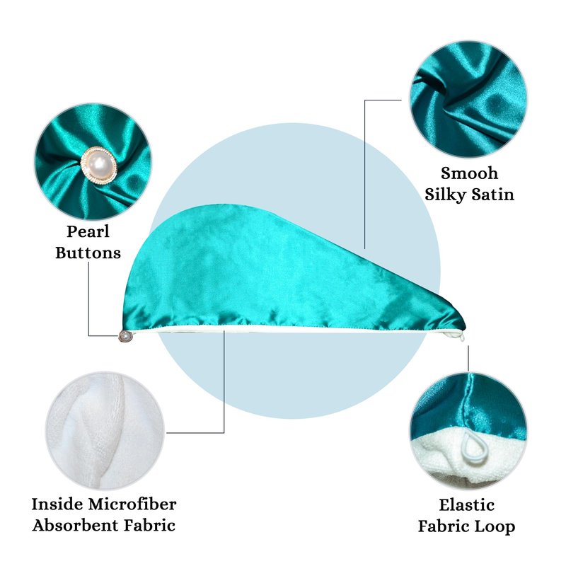 - 【SUITABLE FOR ALL HAIR TYPES】No matter what type of hair you have, our satin hair towel wrap is perfect for you. Simply place your hair inside, twist the hair wrap and attach the loop to the button to secure your hair without pulling or hooking the strands