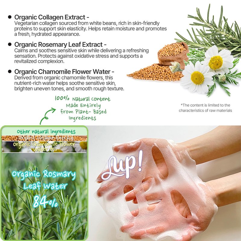 - Organic Collagen Sheet Masks: Indulge in a luxurious skincare experience with these 5 pack biodegradable cellulose lyocell sheet face masks. Deeply moisturizing formula leaves skin plump, supple, and rejuvenated.