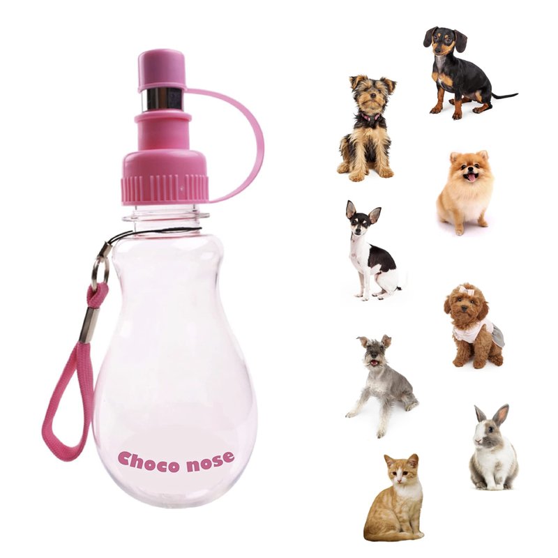 Choco Nose Patented Portable No-Drip Travel Water Bottle/Feeder for Dogs/Puppies/Cats/Rabbits and Other Small Sized Animals -8 oz. Leak-Proof Nozzle 16mm, Pink (H258)