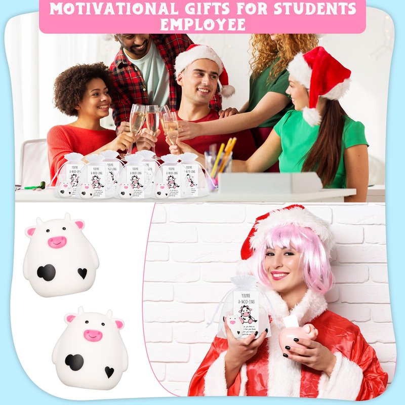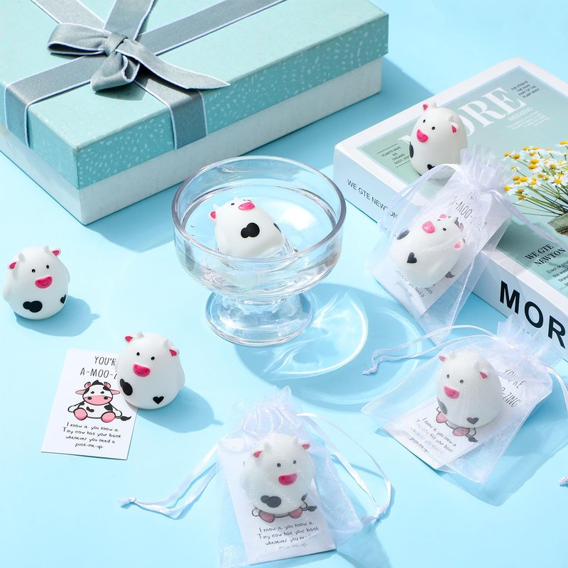 - Reliable and Safe: the cow squeeze toys are made of PVC, which can be kneaded and kneaded, not easy to deform or fade, simple to clean; The card is made of double copper paper, with single sided printings, comfortable to touch and has texture; The toys and cards can be wrapped in a white organza bag to make them look beautiful