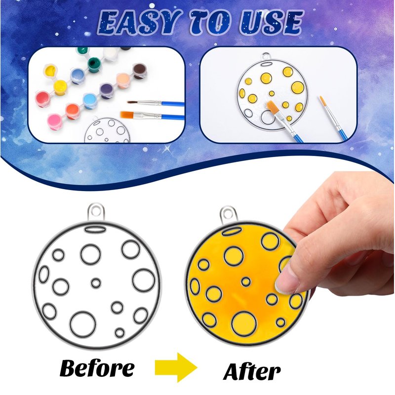 - Versatile Occasions: this planet creates your window art that can be displayed on kitchen windows, trees, glass doors, car windows, porches, classrooms, playrooms, planet themed parties, and anywhere sunny, adding a holiday atmosphere; And the suncatchers painting kit is funny and lets people busy for hours and practice their fine motor skills