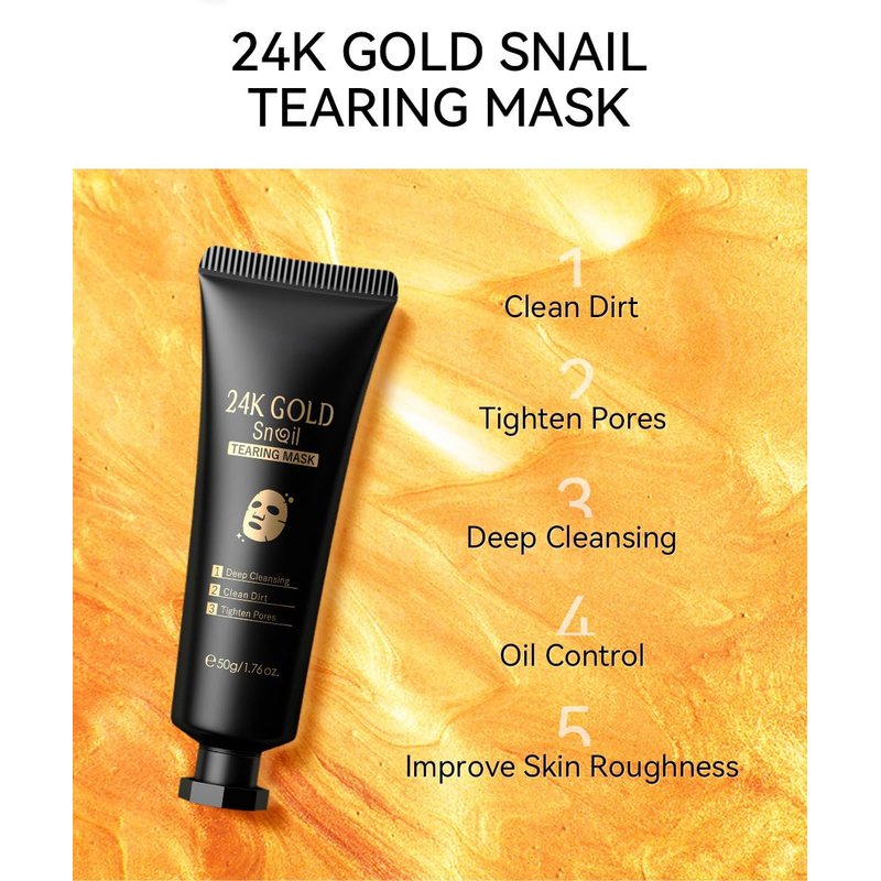 - 1PC 24K Gold Snail Peel Off Mask, Deep Cleansing Tightening Purifying Oil Control Deep Cleansing Peel Off Mask, 150g/1.76 FL Oz