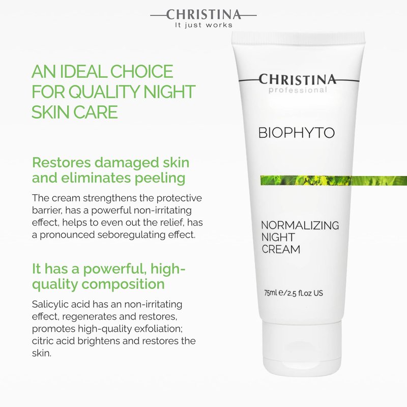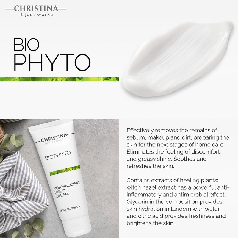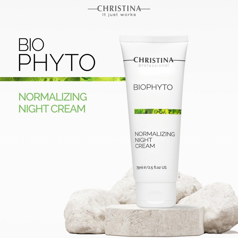 -CHRISTINA- Bio Phyto Normalizing Night Cream with Hyaluronic Acid & Vitamin E | Stress Reducing& Barrier Strengthening Night Cream for Face for Oily & Combination Skin 75ml