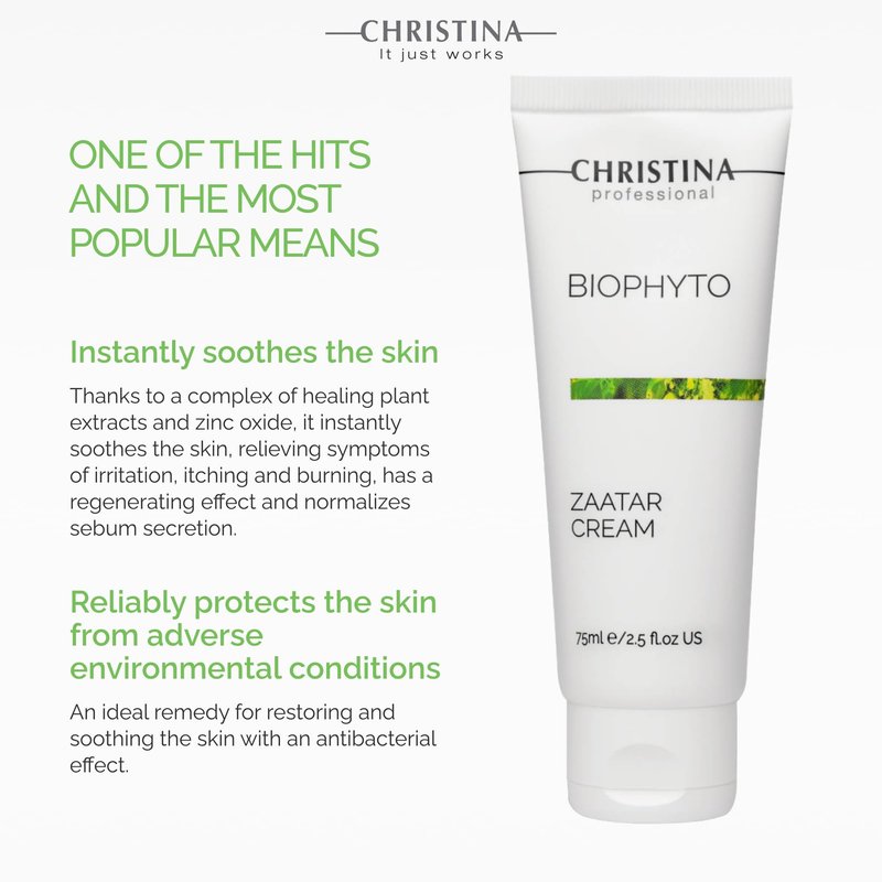 -CHRISTINA- Biophyto Zaatar Cream - 75ml - Vitamin E and Retinol Cream with Thyme & Marjoram Oil for Skin Repair - Balancing Cream for Combination, Dry, Normal, Oily and Sensitive Skin