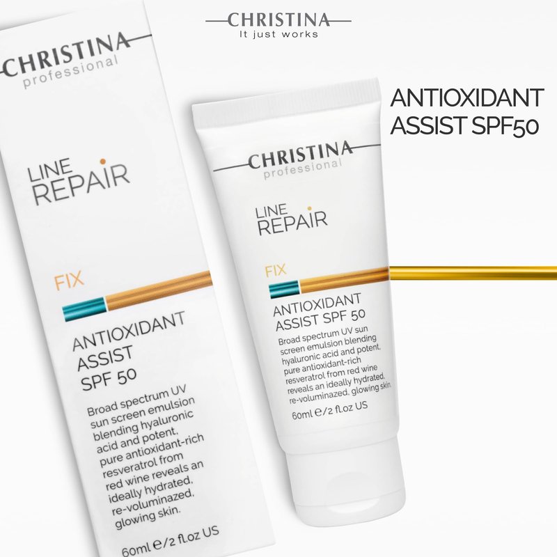 Christina Line Repair Fix Antioxidant Assist SPF 50 Sunscreen for Face - 60 ml - Broad Spectrum UVA/UVB Protection Daily Face Sunscreen with Hyaluronic Acid and Resveratrol