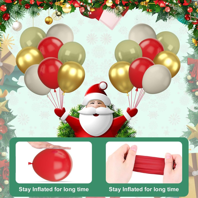 - Advanced Material: Long-lasting decoration. Advanced material latex balloons. These Chrismas balloons are resistant and won't break easily, ensuring your decorations stay in condition throughout the Christmas season. So you don’t have to worry about the decoration losing its charm early