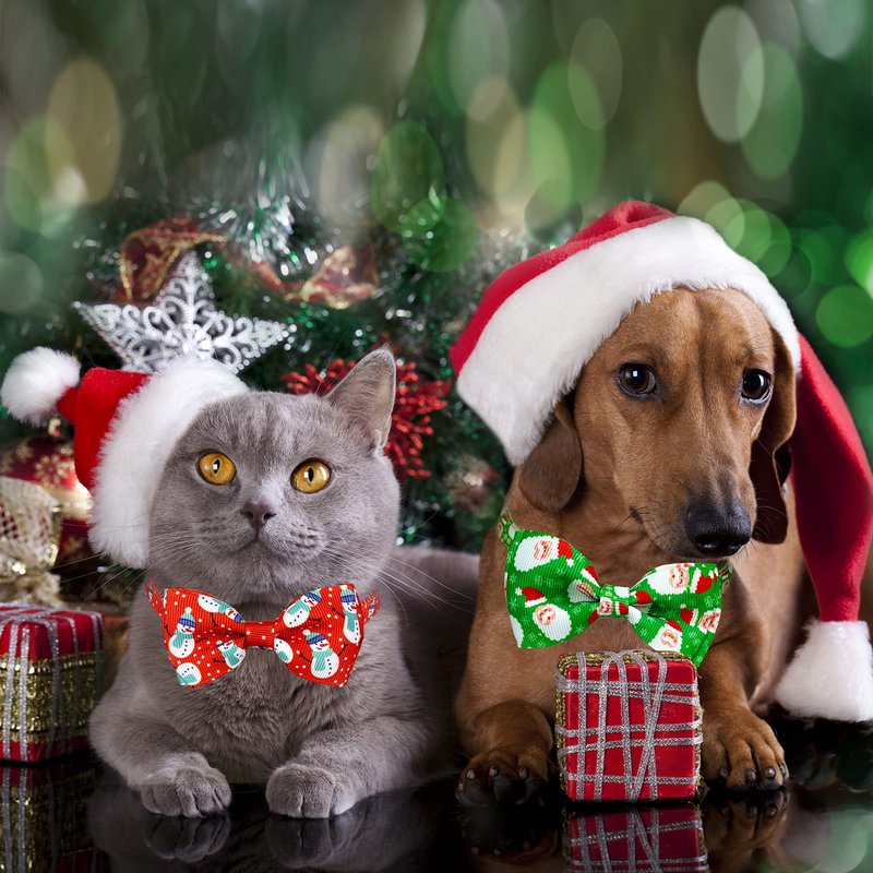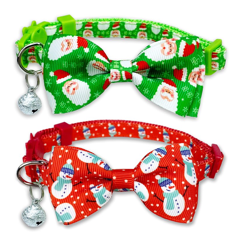 Christmas Cat Bow Tie Collar with Bell, 2 Pack Holiday Kitty Kitten Santa and Snowman Collar for Male Female Girls Boys