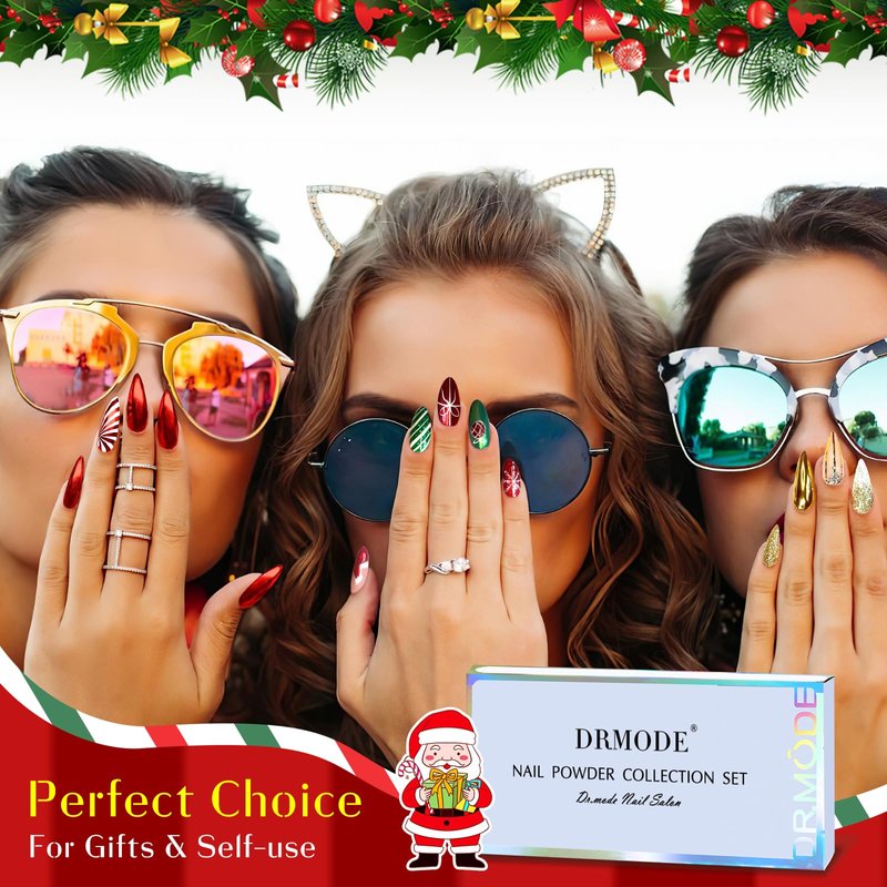 Christmas Chrome Nail Powder, Red Chrome Powder For Nails & X'mas Gold Green Metallic Mirror Nail Chrome Powder & Silver Rose Gold Pink Blue Purple Solid Chrome Powder for Nail Art