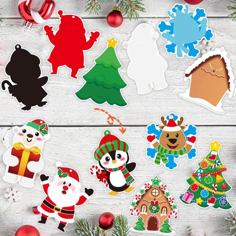 - Christmas Craft Kits: You will get 24 sets of Christmas paper ornaments in 6 different patterns, including 24pcs Christmas ornaments cards and 24 sheets matching DIY stickers, come with strings for easy hanging and decorating, enough quantity to meet needs on Christmas activities, everyone can enjoy endless DIY fun at the Christmas party crafts