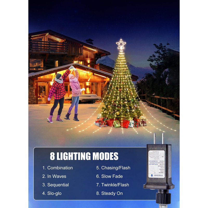 - Magical and Cozy Decor: Transform your home into a cozy winter wonderland with our Christmas tree decoration lights. The 11-inch topper star and 9 strings of warm white lights, each 11.8 feet long, add a touch of elegance to your holiday decor. Plus, with 1 hanging string and 9 ground spikes, these lights are perfect for versatile outdoor decorating.