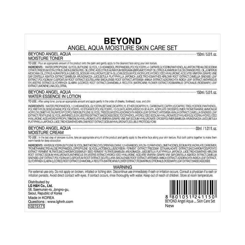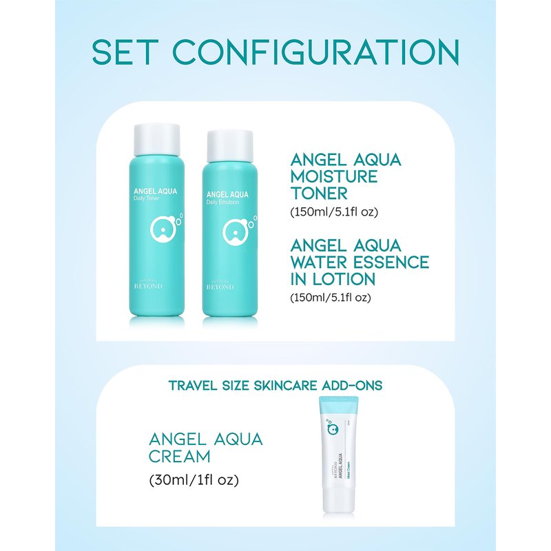 Christmas Gifts BEYOND Angel Aqua Moisture Skincare Set (11.2fl oz , 3-Piece Set) - Vegan Formula Korean Skin Care for Dry & Rough Skin. Toner & Emulsion. Hyaluronic Acid, Cica, Pantenol