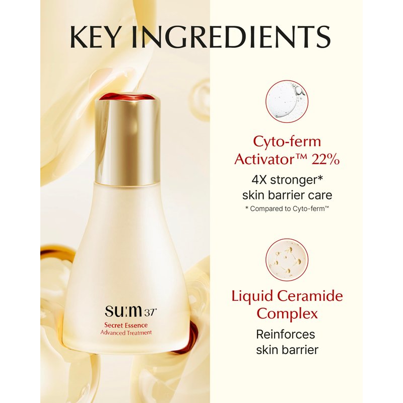 - SU:M37 SECRET ESSENCE (80ml/2.71fl oz) - This essence deeply hydrates and strengthens the skin's barrier, helping to enhance elasticity, smoothness, and natural radiance for a refreshed and youthful appearance.