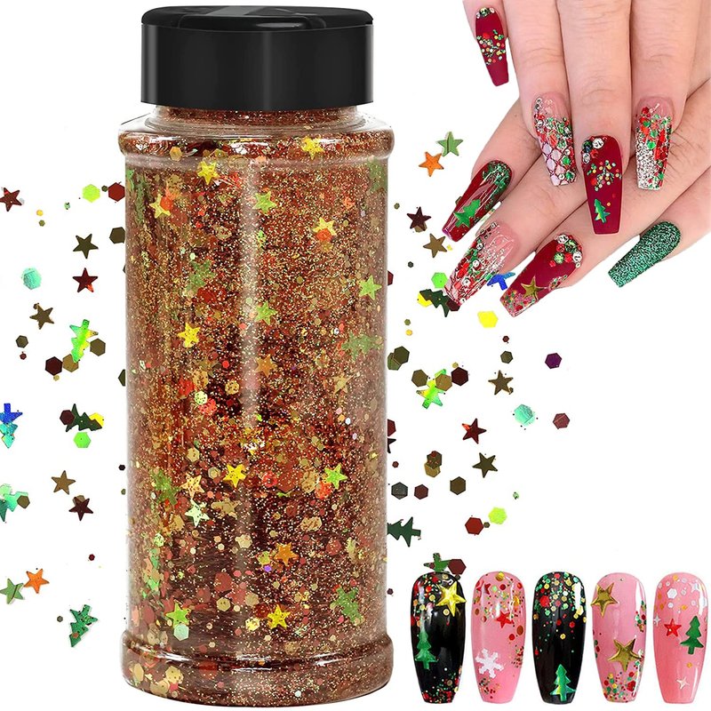 - ✨ Various Pattern Designs: 100g/bottle. Each bottle is composed of sequins with different patterns, such as snowflakes, Christmas trees, stars, hexagonal sequins and other popular mixed-shaped Christmas elements. To meet your nail decoration needs can be used multiple times.