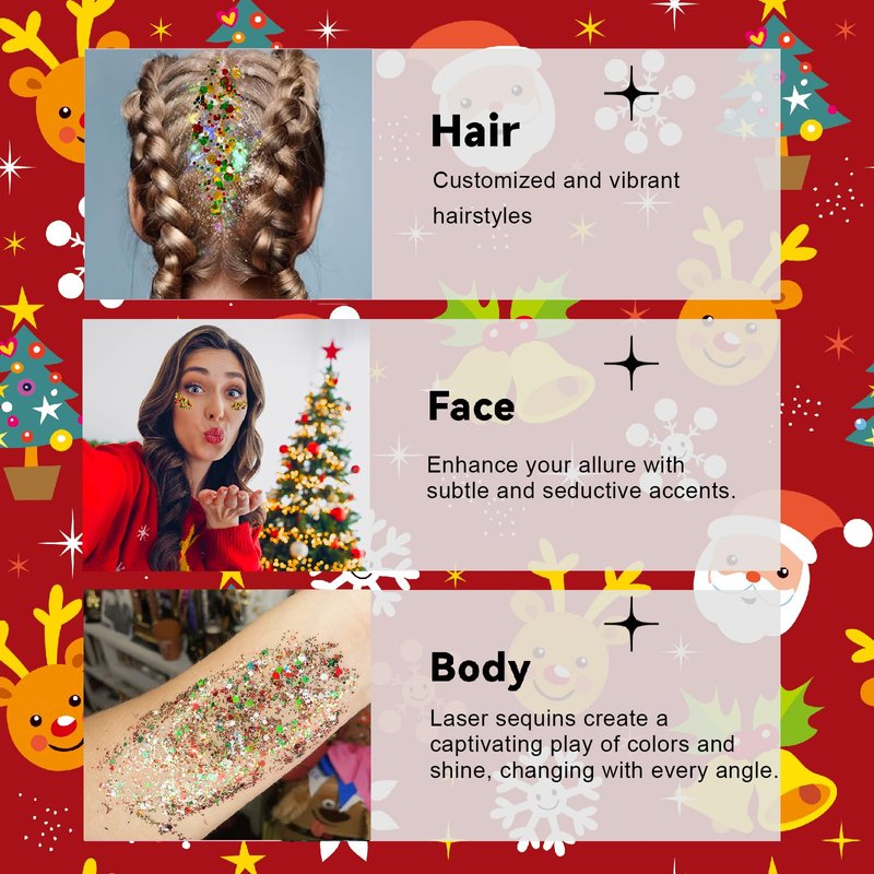 Christmas Glitter Gel for Body, Face, Hair and Lip, Color Changing Glitter Gel Under Light (Christmas).