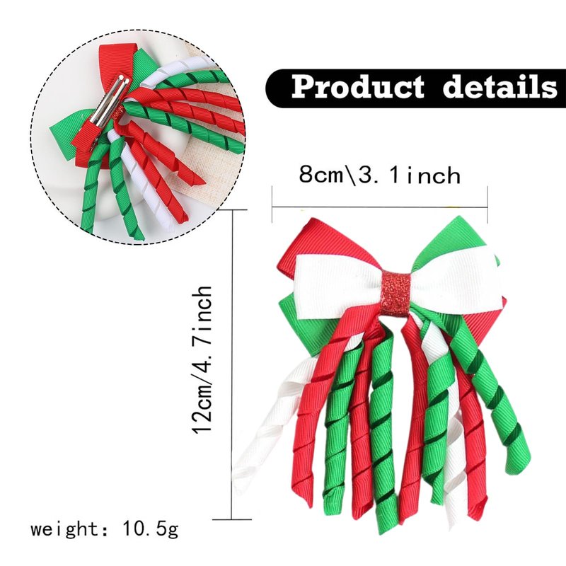 - 【Christmas Theme Design】Novelty curly ribbon hair bows embellish your pigtails, funny and distinctive, make you more cute and charming, Christmas Day classic red white green colors, adding to the xmas holiday party atmosphere
